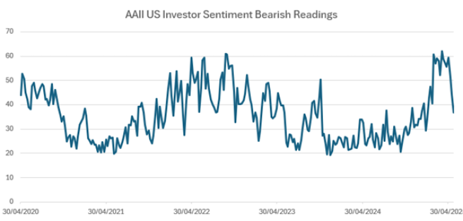 Source: American Association of Individual Investors, Bloomberg, as of 25 May 2025